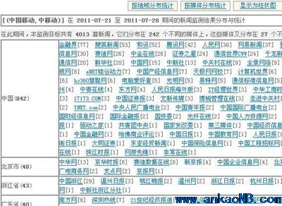 5、媒介監測:對公司產品、服務、形象等在媒介的傳播通路進行統計分析,找出傳播量大的媒介,以及媒體傳播中涉及的熱門人物(媒體記者、熱心網友、意見領袖等)