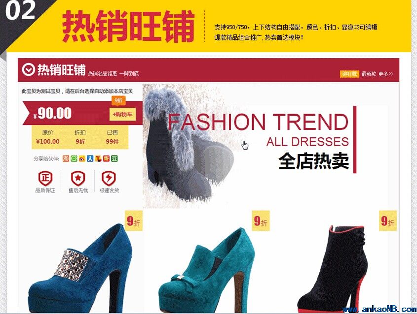 3.旺鋪拓展版:頁(yè)面背景設(shè)計(jì)、寶貝描述模板、寶貝分類模板、旺鋪?zhàn)筮吥0濉⑼佊疫吥K、旺鋪通欄banner、旺鋪公告模板、旺鋪?zhàn)远x頁(yè)面模板、店招促銷區(qū)套裝、Flash模板區(qū)(促銷區(qū)模板、頁(yè)面模板、分類模板)、店鋪公告模板;