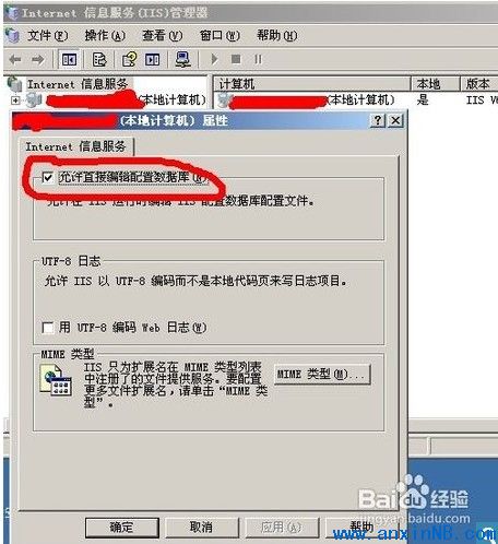 接下來(lái)也是重要的一步了,編輯IIS配置數(shù)據(jù)庫(kù)配置文件,在此操作之前,我們應(yīng)該關(guān)閉IIS服務(wù)器才能進(jìn)行接下來(lái)的操作,當(dāng)然我們也可以不關(guān)閉IIS服務(wù)器,我們雙擊IIS服務(wù)器,右鍵點(diǎn)擊本地計(jì)算機(jī),點(diǎn)擊屬性,在允許直接編輯配置數(shù)據(jù)庫(kù)上打鉤,那么我們不用關(guān)閉IIS就能直接配置服務(wù)器配置數(shù)據(jù)庫(kù)配置文件了
