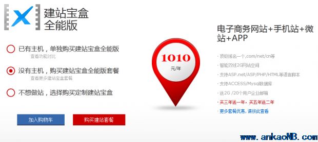 首先,你需要去耐思尼克官網(http://www.iisp.com/design/?s=sorunme)購買一套全能版建站寶盒套餐,內含一個頂級域名、2G云主機、2G企業郵局、還有全能版建站寶盒系統,費用加起來1010元,讓然,如果你有主機和域名的話,需要花費596元單獨購買全能版建站寶盒系統,對于習慣于用免費系統的用戶來說,可能難以接受,沒關系,我們繼續往下談。