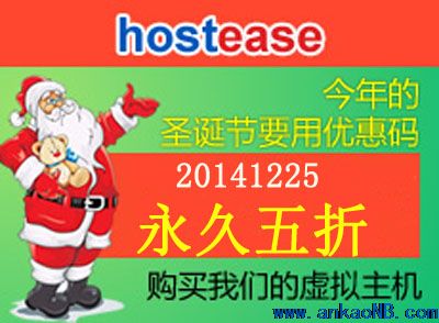 在眾多美國虛擬主機商中,HostEase推出的優惠碼可算是多給力的了。為迎接2014年圣誕節的到來,HostEase又推出了新主機優惠碼:20141225,使用該優惠碼購買任意虛擬主機(包括香港主機)方案均可永久享受半價優惠,有效期為12月31日。