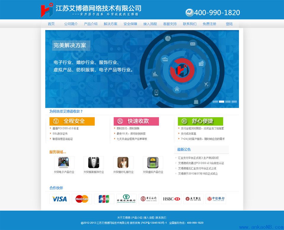 通過PCI DSS v2.0認(rèn)證,具備從事國際信用卡交易資質(zhì),與多家銀行簽署戰(zhàn)略合作關(guān)系,支持國際主流12種外幣實時結(jié)算。 -