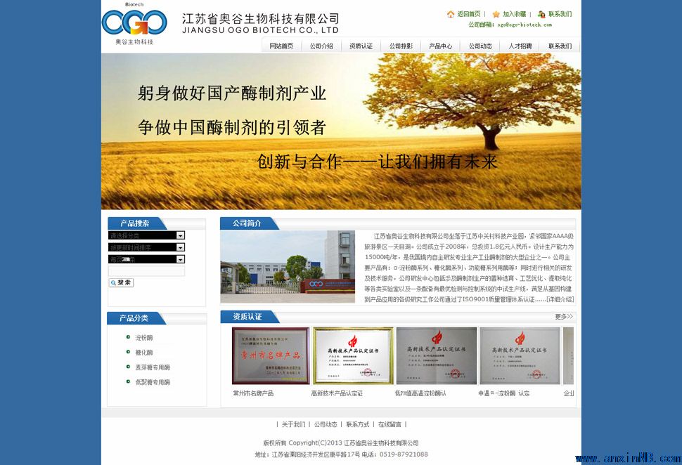 江蘇省奧谷生物科技有限公司坐落于江蘇中關村科技產業園,緊鄰國家AAAA級旅游景區—天目湖。公司成立于2008年,總投資1.8億元人民幣。設計生產能力為15000噸/年,是我國境內自主研發專業生產工業酶制劑的大型企業之一。