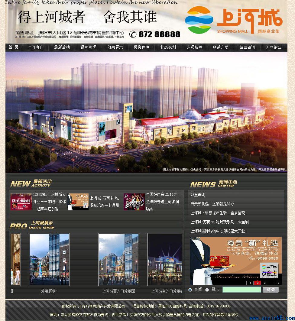 陽光城市·上河城18萬平米國際shopping mall 靠近百萬平米陽光城市精英居住區,位于平陵中路與天目湖交叉口,直接面臨平陵中路、天目路、溪路三條城市主干道,西靠市政公園清溪河景觀帶,是一座集娛樂、休閑、時尚百貨,大型超市、步行街于一體的國際化現代商業中心。 http://www.shangheplaza.com